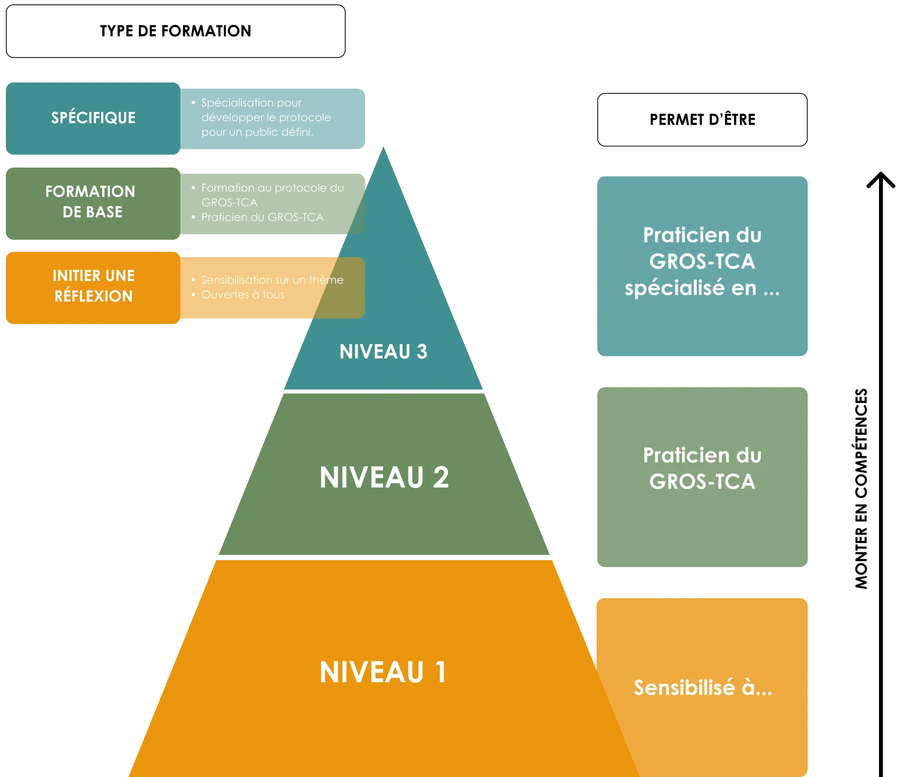 À terme, les formations de Niveau 3 du GROS-TCA auront pour objectif d’accompagner les praticiens du GROS sur diverses thématiques liés aux conduites alimentaires et d’enrichir leurs connaissances afin d’approfondir leurs compétences afin d’accompagner au mieux leurs patients à l’issue de ces formations.